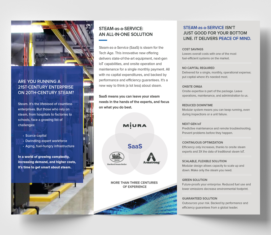 After a comprehensive Discovery phase, 3Lane developed a Visual Brand Identity Portfolio that included wordmark, typography set and color theme for HSB Tech and cohesively aligned with the existing Hartford Steam Boiler division (HSB Group, Inc.) and parent company Munich Re. After finalizing the visual identity, 3Lane created a wide array of marketing materials to support the new HSB Tech brand image— including flyers, signage, interactive digital kiosk screens, video assets, digital ad banners, infographics, brochures, branded photography assets, textured glyphs, iconography and PPT templates—and serve as the backbone for numerous trade shows, marketing campaigns and internal communications.