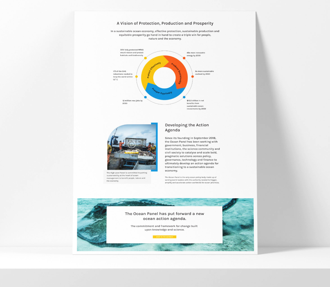 The Ocean Panel had a very specific vision and set of brand, content, and technical requirements that needed to be met in a very short amount of time, making close communication and collaboration as well as a flexible, agile workflow structure essential throughout the course of the project. To garner excitement, increase user engagement, and successfully convey the innovative energy of this outstanding organization, 3Lane developed an entirely new, intuitive site architecture to effectively tell the Ocean Panel’s story, along with a fresh, exceptional, visually stunning technical design to bring the story to life through advanced animation, multimedia-rich content, and the latest techniques in digital design. The site was built with a high level of extensibility in mind to accommodate future initiatives and lay the groundwork for the Ocean Panel’s success for years to come.